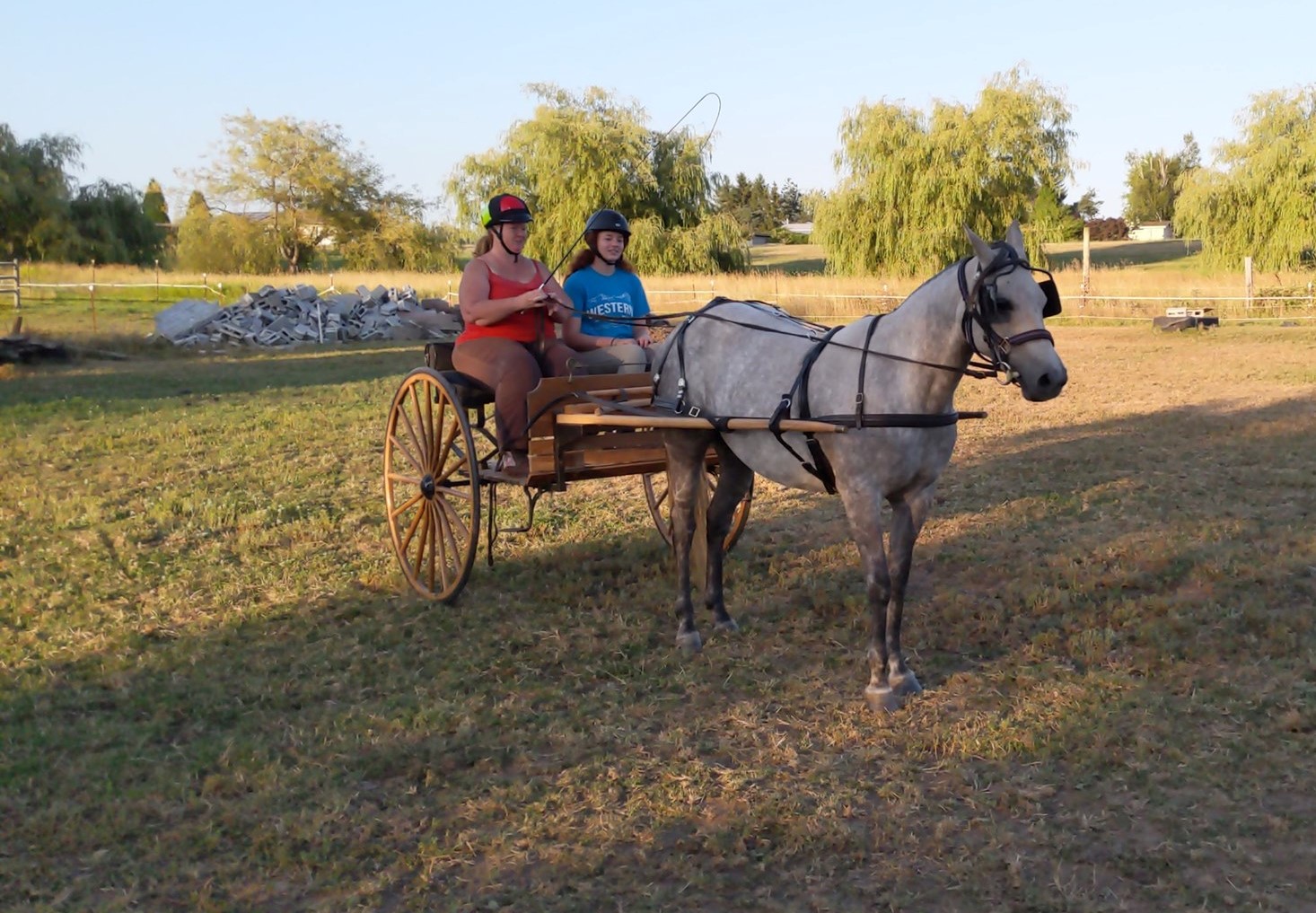 We are shifting our training focus to specialize cart horse training. We spend 1-2 hours in 1-3 sessions per day for 5 days a week (typically weather dependent). We start from the ground up and reinforce any training already received and correct any issues as they arise. Cart training includes: