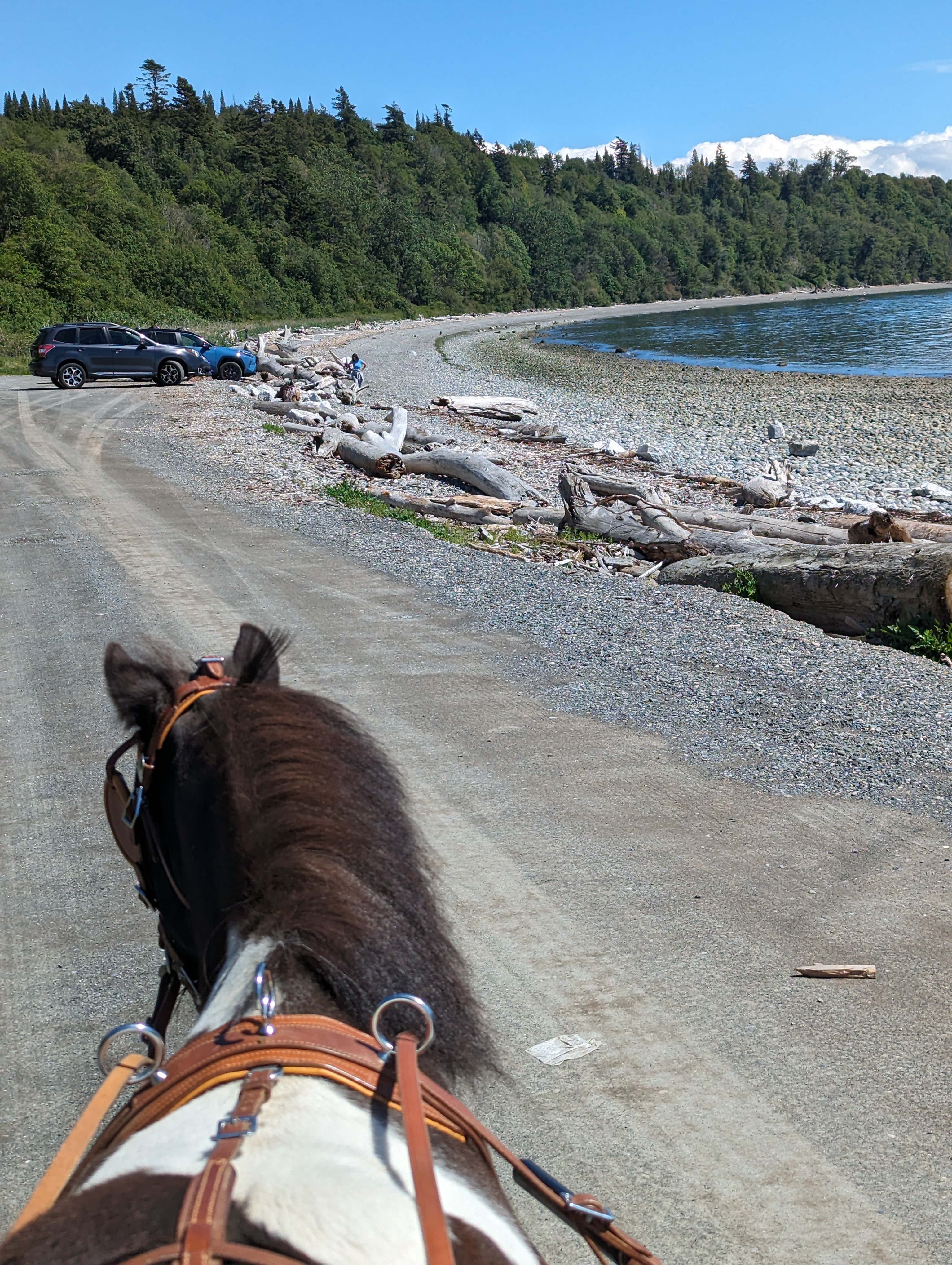 I use natural horsemanship methods. I believe that we should apply the smallest amount of pressure, and not a drop more, to obtain our goal. I train in Happy Mouth bits, if you need great force to gain control you’re doing it wrong. Training horse through force or fear only works for so long, eventually something scarier than you will come along and you lose your “control”. I develop a respectful relationship built on trust with the horse. When the day comes and the horse-eating leaves attack, the horse will look to me for guidance instead of bolting with no thought for me.