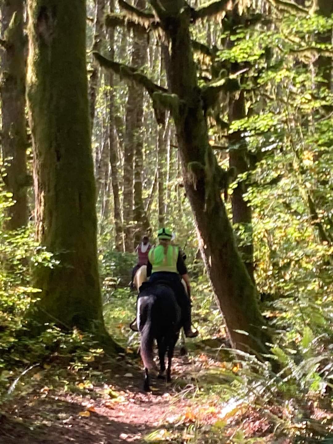 She will be EXCELLENT as a WAHSET horse. She’s been ridden by several WAHSET and WWU Equestrian Team riders. She does everything you expect from a competition horse. She loads easily, stands tied for hours, has camped off the side of our trailer (she’s never high-lined but won’t be an issue), clips, bathes (hates cold water baths), easy keeper (needs and comes with a muzzle), no maintenance, goes barefoot but needs boots on gravel and rocky trails (she does not come with boots).