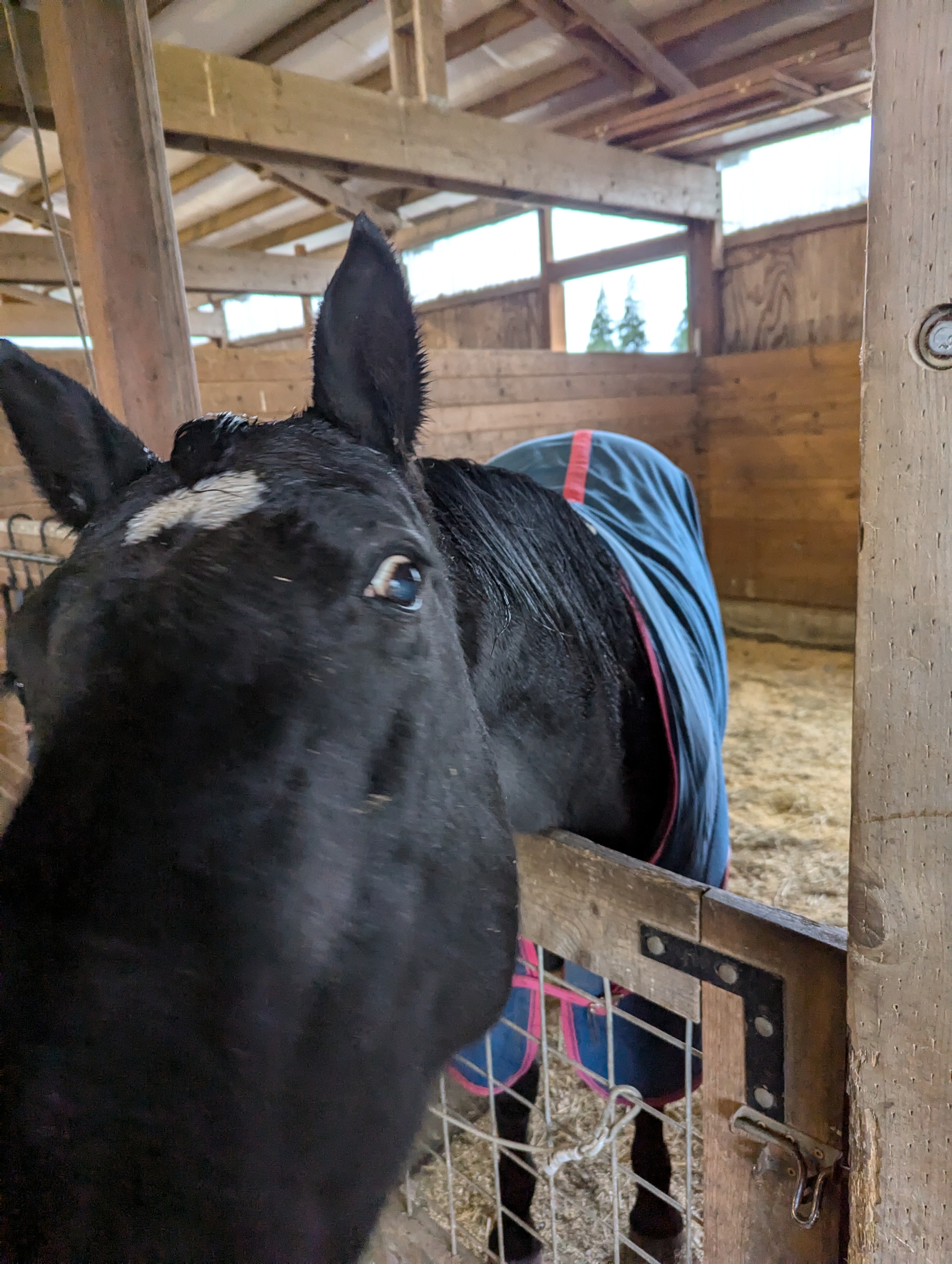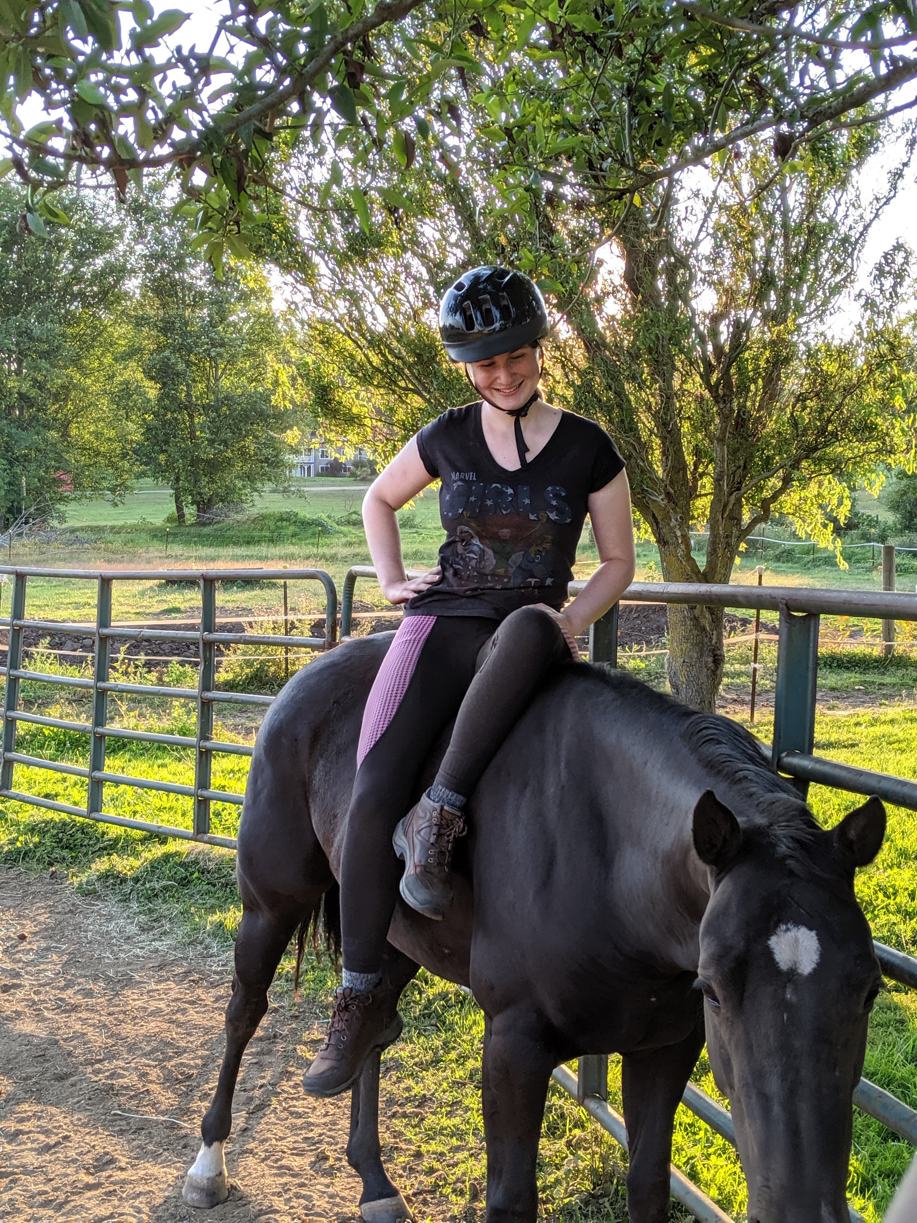 She requires a confident rider, intermediate or above. She tests every rider that gets on, me included. It’s a 5 minute discussion about who’s the boss then you’re good to go. She’s been ridden by many different interns, over the years.