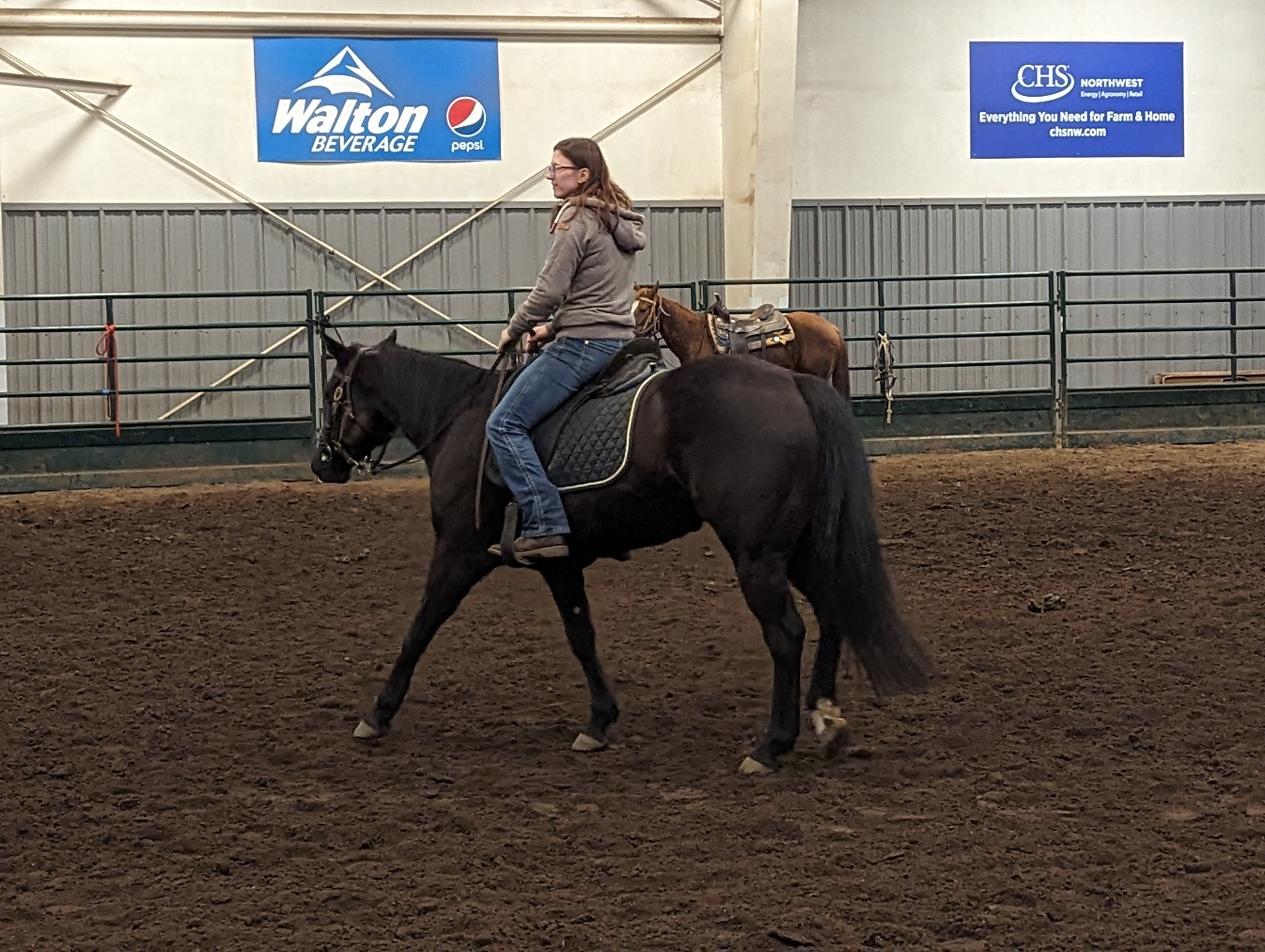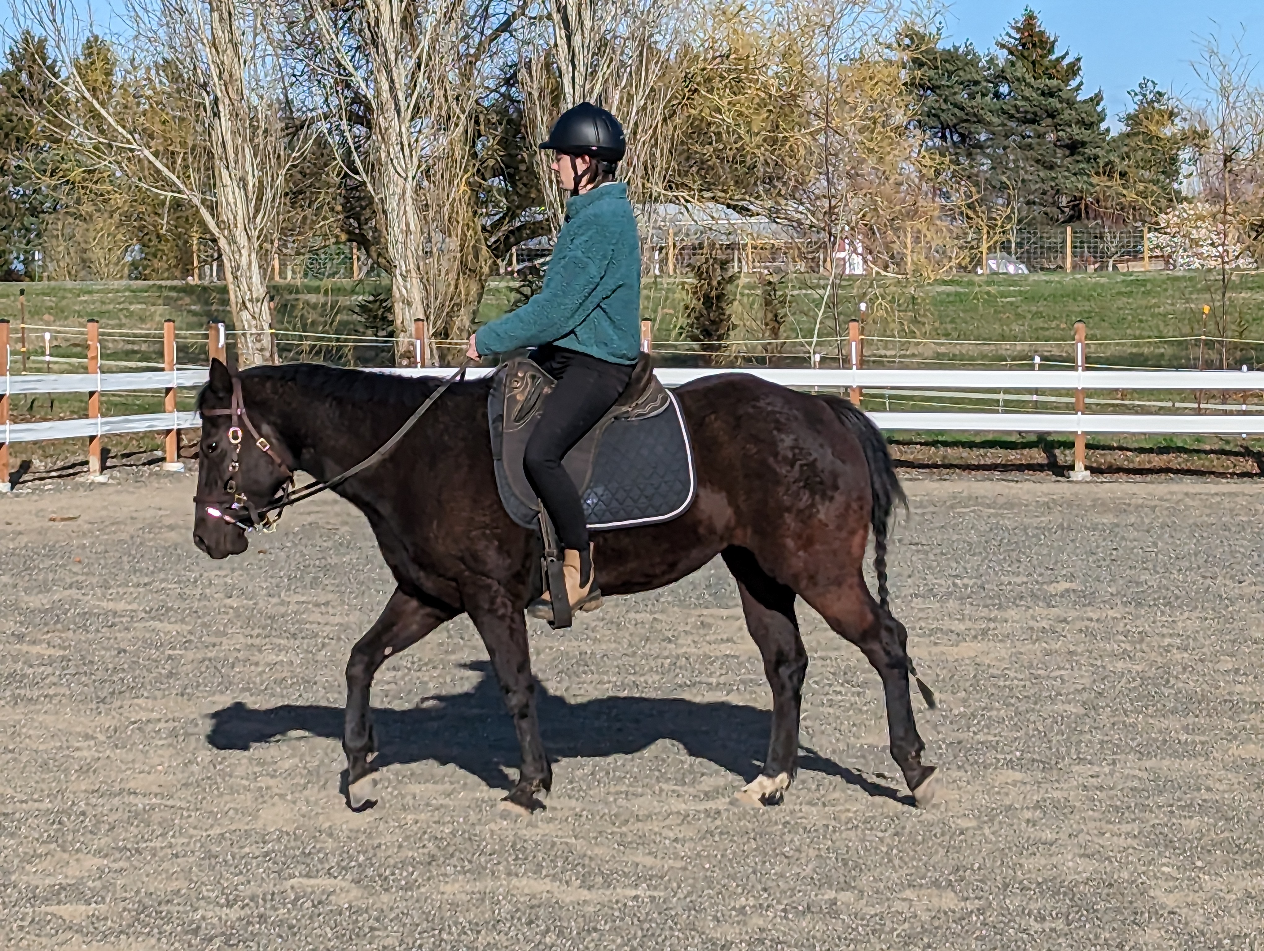 Cezanne goes English and western, with a classical dressage foundation. She’s very versatile and willing to try new things. She has advanced skills in ground training, including roundpenning, lunging, longlinging/double lunging, ground driving, in-hand obstacles. She’s good in the arena and on trails. She’s been overnight camping, cattle sorting, fox hunting (not a jumper but she’ll pop over small stuff), and to local shows. I intended to take her to Fair, last year, but schedule conflicts nixed that plan. She’s very versatile. She’s not fast enough for gaming and she’s too lazy to do any serious jumping. but she can certainly try hard enough to make High Point a possibility. Ride with purpose!