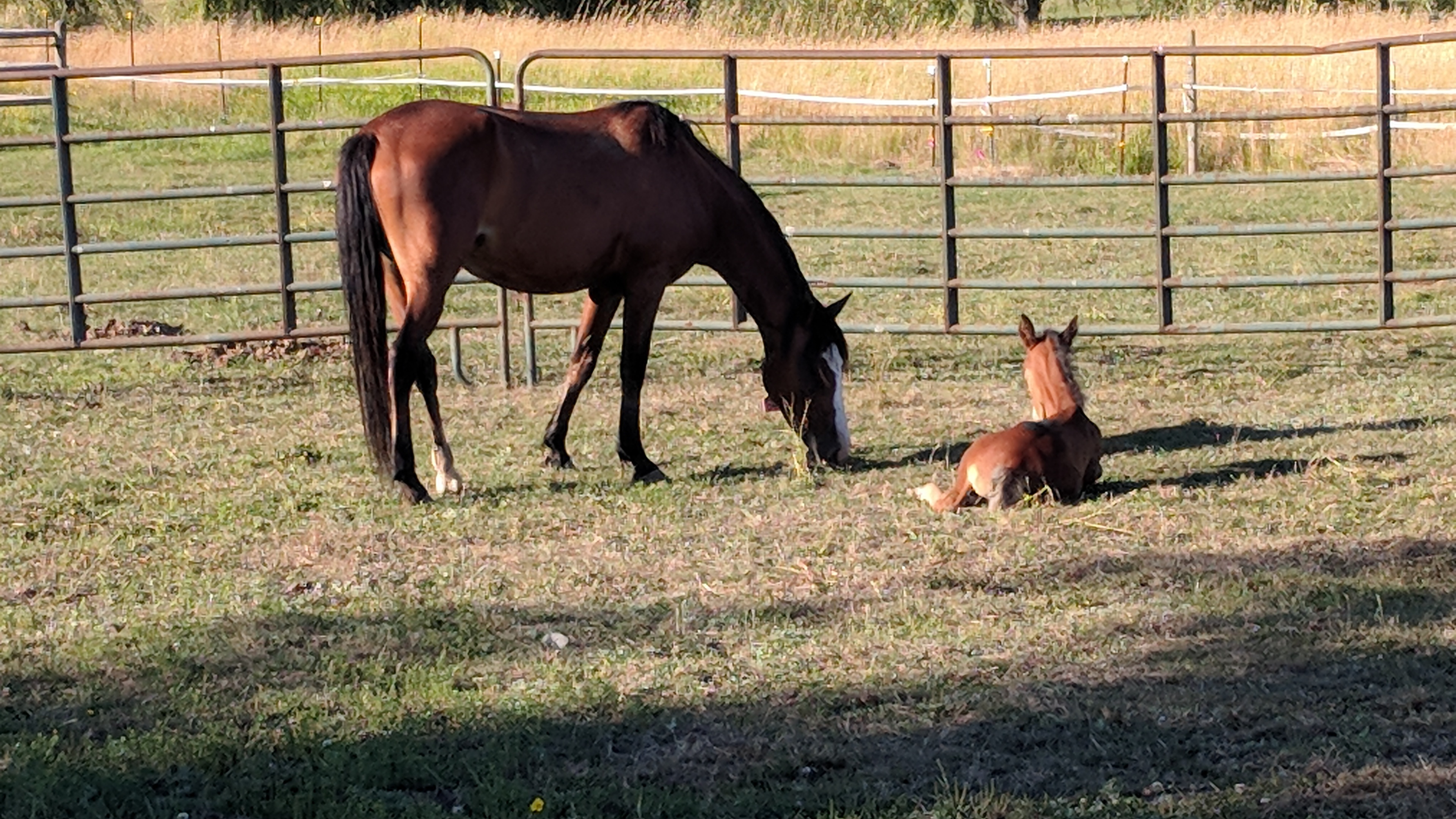Riba was rounded up July 1, 2018 off of the Yakama Reservation in Eastern WA. Adult horses are rounded up and sold into the slaughter pipeline. Legally, horses must be over 6 months old to ship so the foals are orphaned and the adults are shipped. At the time, she was extremely pregnant so when they loaded her onto the truck, she created enough drama for them to unload her with plans to ship her the following week. Before the next shipment day arrived, her filly did! I was in the process of adopting 2 orphaned foals and convinced the catcher to let me buy the mare, as well.