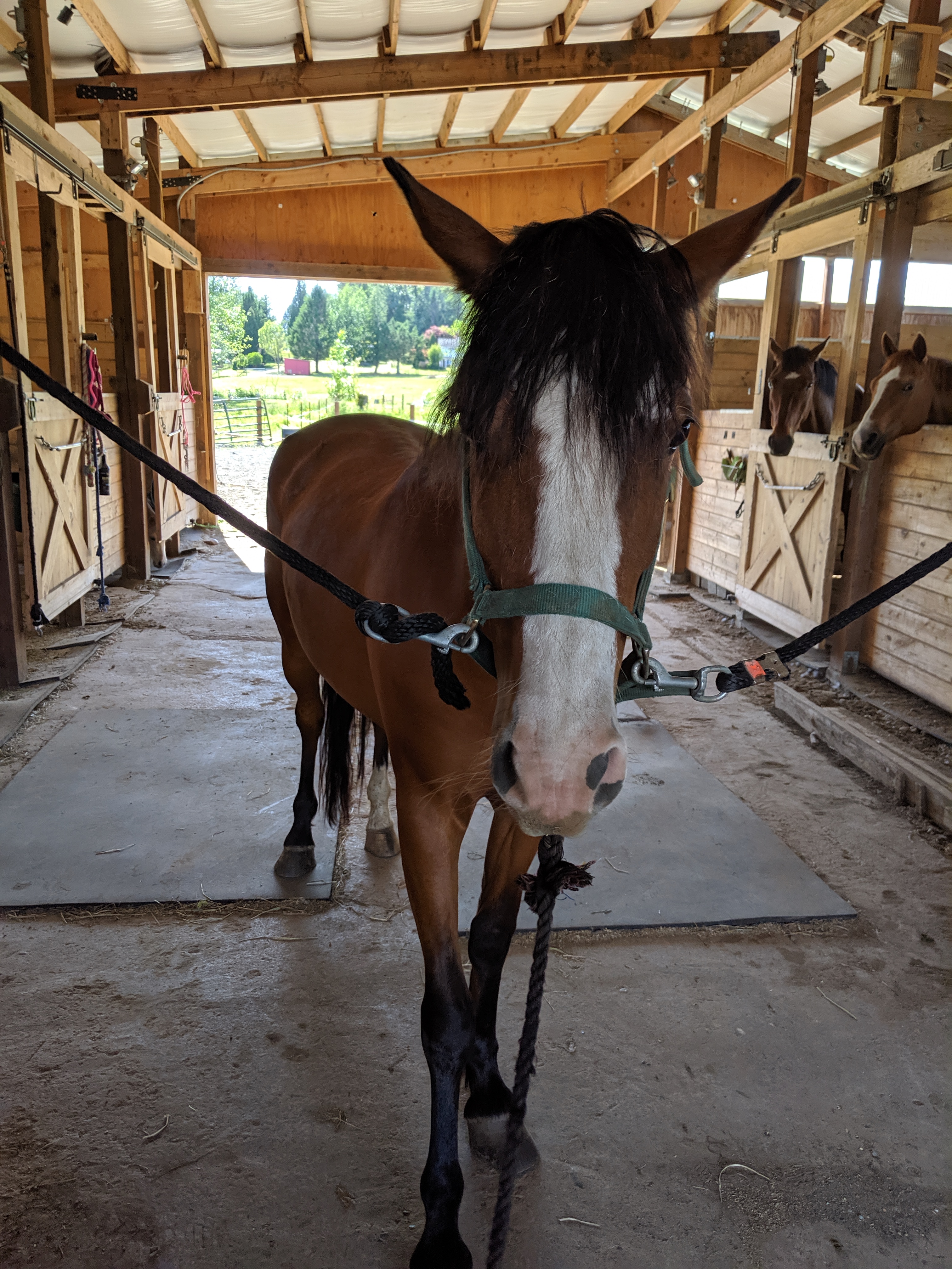 Since coming to Wyndover, she’s been the project horse for several interns. Here, interns learn to handle and train their own horses, focusing on groundwork. They also learn cart/carriage driving. Intern learn skills then practice those skills on several horses, of different training levels. They learn ground handling and training, like roundpenning, lunging, and in hand obstacles. Senior interns then learn to how train horses to drive . Riba isn’t a candidate for cart driving so she spends her life doing the boring basics. (I no longer start riding horses). She has the capacity for so much more!!! She just needs the right person to take her there. She’s worn a saddle and has had weight across her back but has not yet had a leg over, nor has she been bitted.