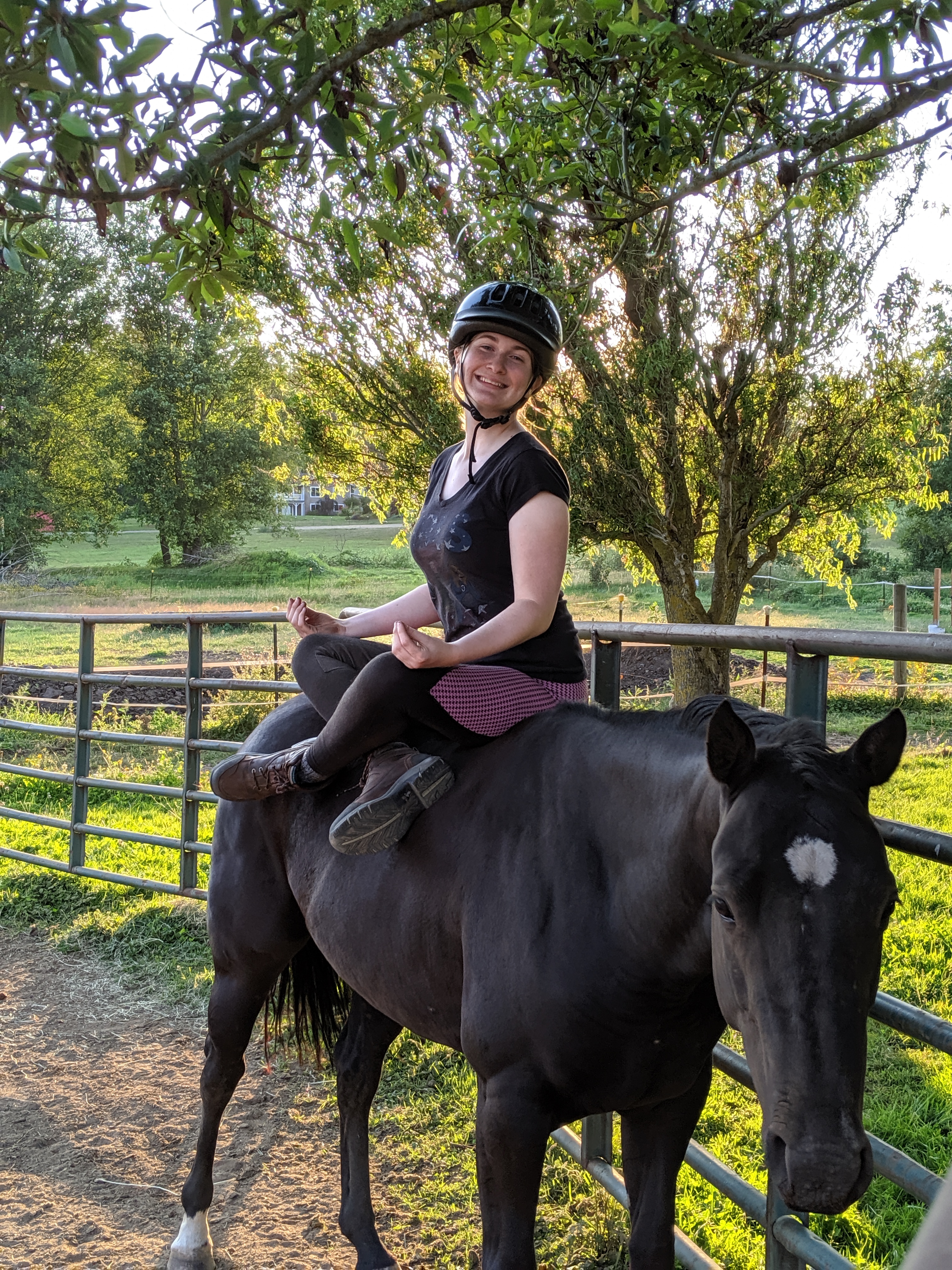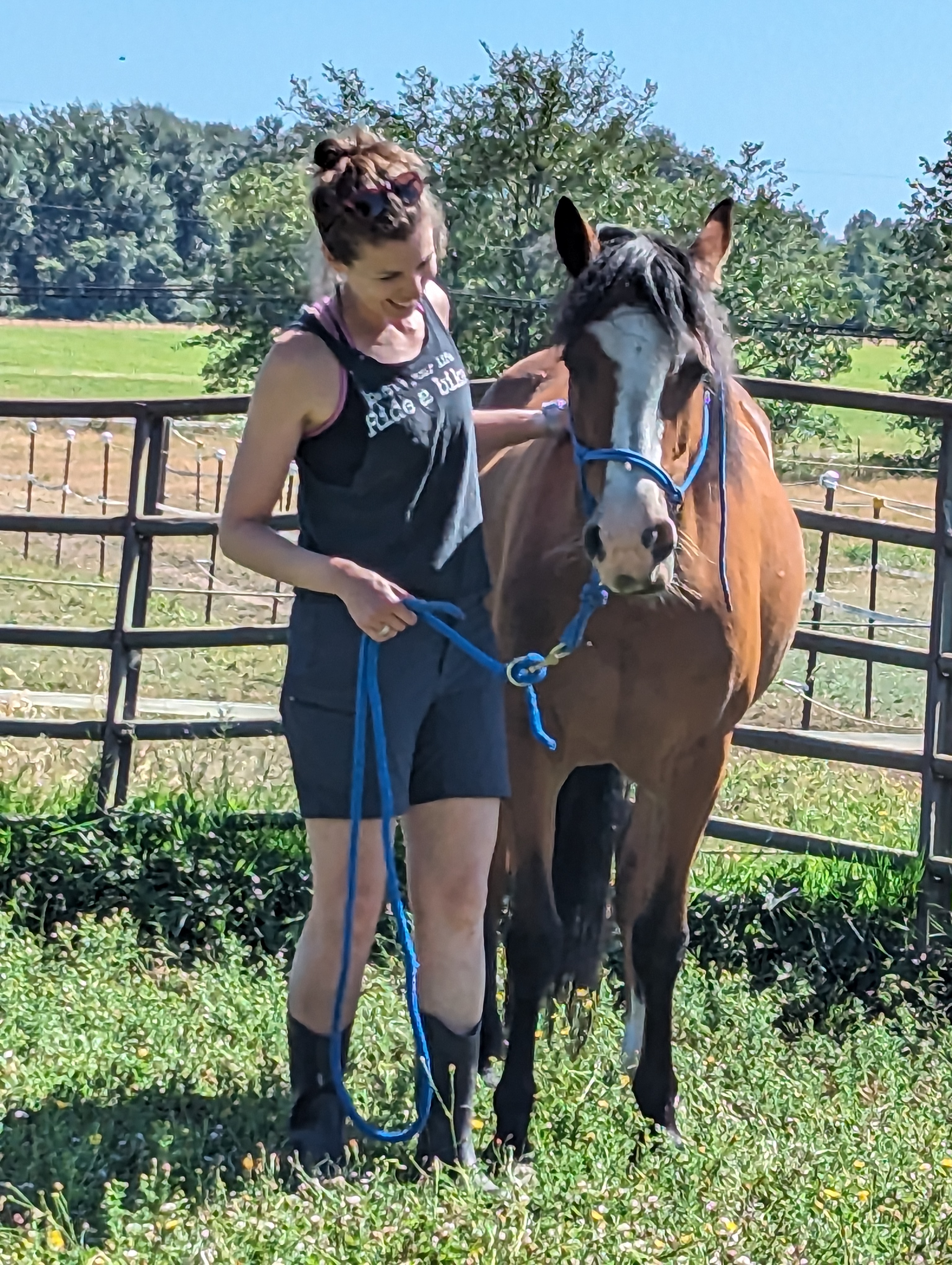 I believe we, horses and humans, are in a state of constant learning. I believe in “see one-do one-teach one”. A great way to reinforce your experience/knowledge is to teach it to those lower on the experience hierarchy. I believe horses, like humans, continue to learn their entire lives. There are countless horse people with more experience than me, but there are also countless people I eclipse in knowledge and experience. I find I improve my skills and techniques by going over basics. In turn, I train with professionals with a greater skillset and level of expertise than me, so I can pass on what I learn.